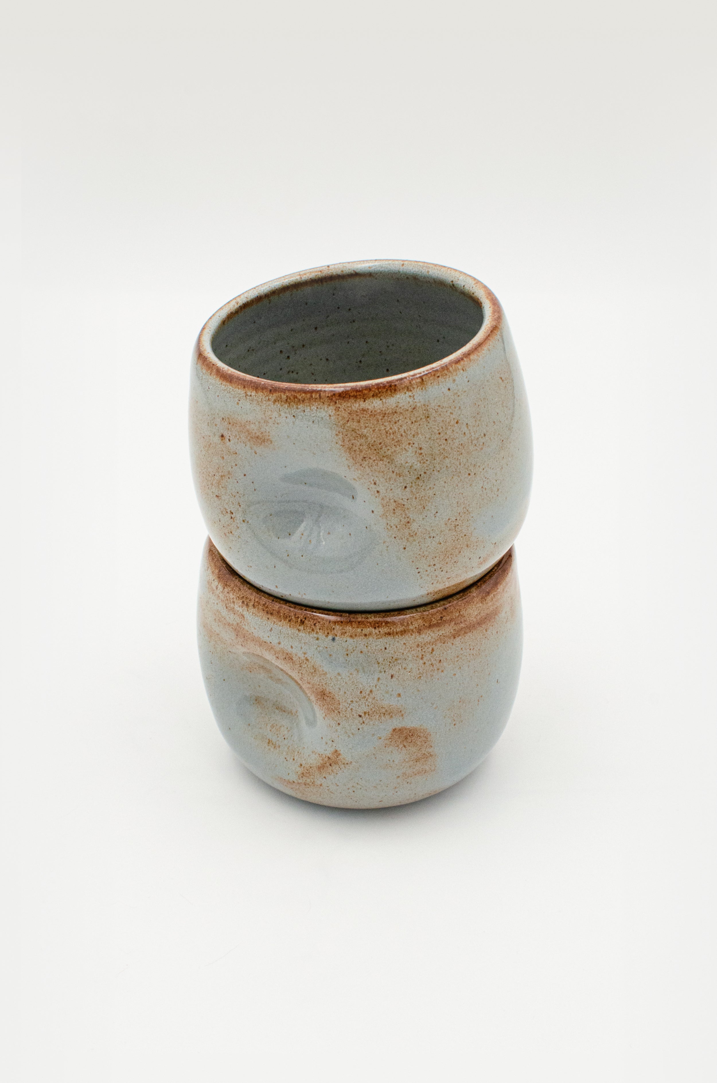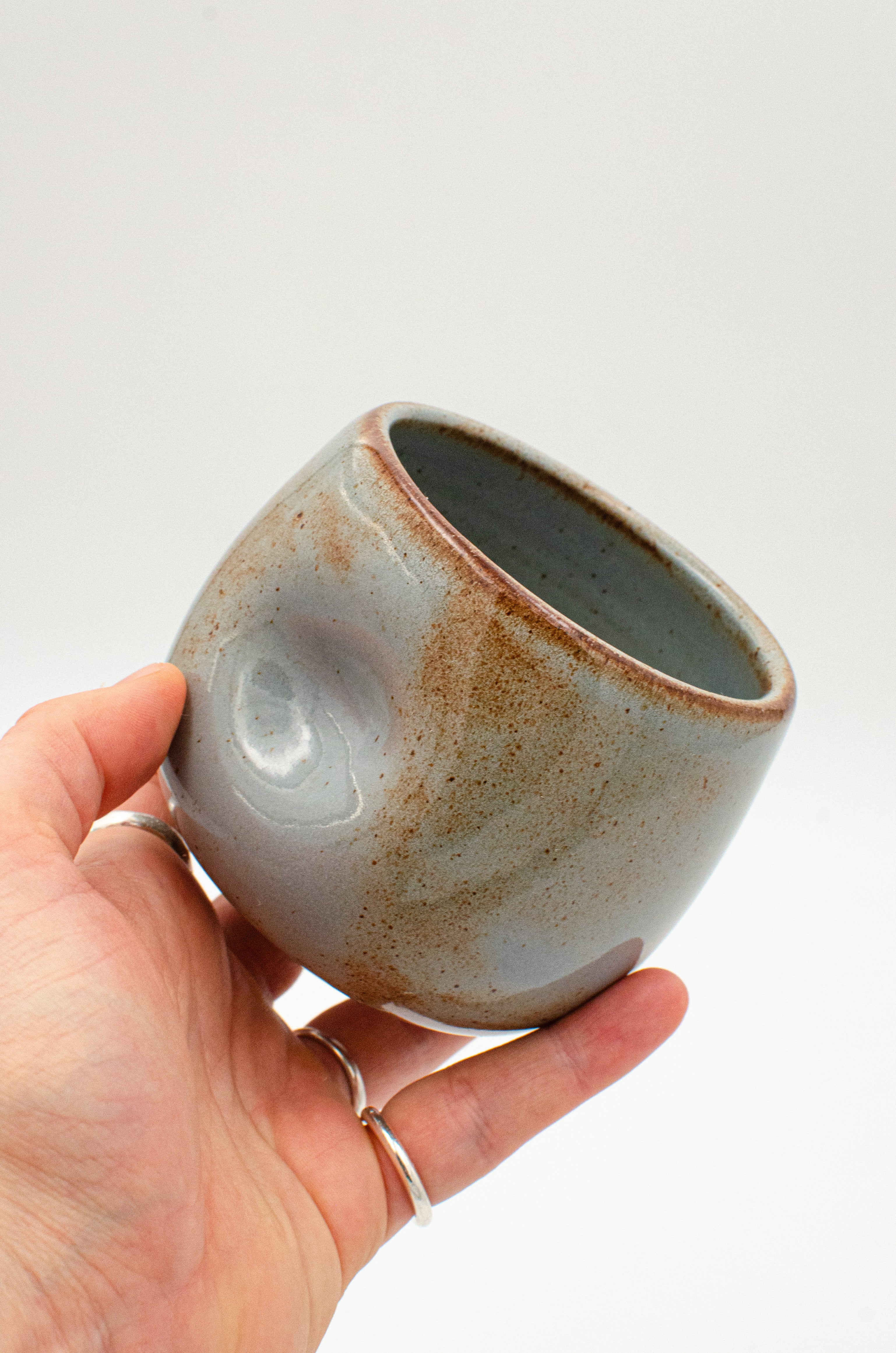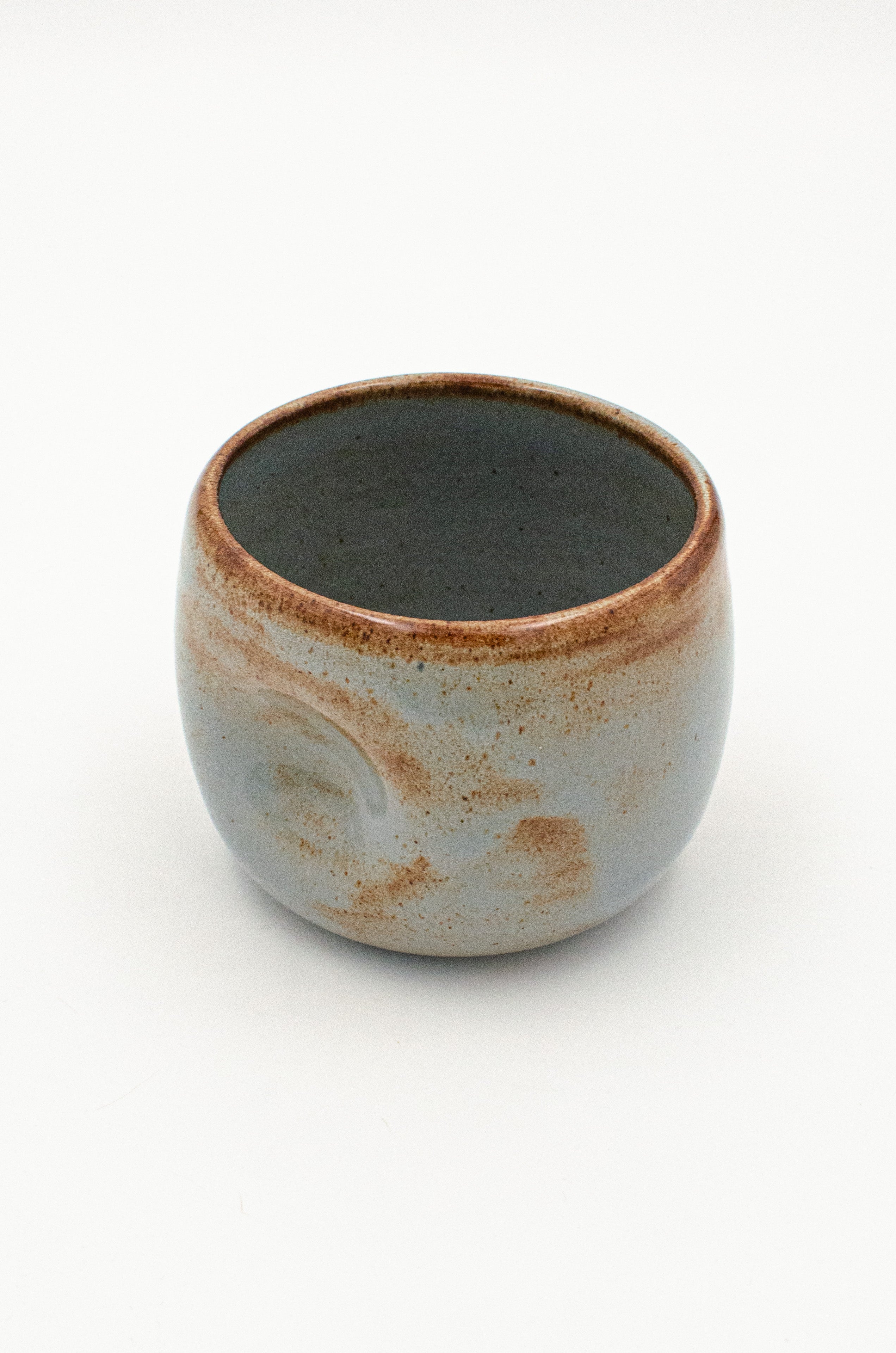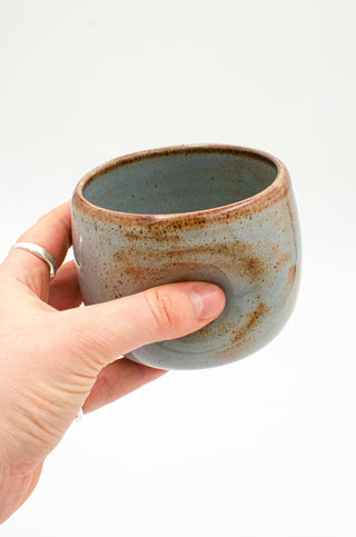 A low, rounded cup with a pronounced thumbprint dimple to fit perfectly in your hand.